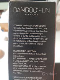 Tavoletta Bamboo Fun di Wacom in perfette condizioni, con cavo USB e porta penna, penna originale, punte di ricambio, scatola e istruzioni originali.