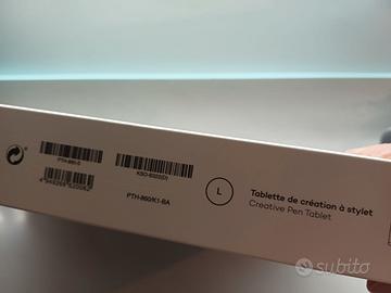 Tavoletta grafica ultrasottile con penna creativa con riconoscimento inclinazione. La confezione contiene penna grafica e cavo di alimentazione originali. Nuova, mai usata. Vendo per inutilizzo.