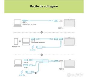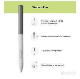 Tavoletta grafica Wacom One 12 Touch, schermo compatto Full-HD da 11,6" (99% RGB (CIE1931) (typ.)) con input naturale tramite penna, perfetta per creativi principianti e per entrare nel mondo del disegno in digitale. Inclusa penna EMR senza batteria, con sensibilità alla pressione 4k, riconoscimento dell’inclinazione, pressoché nessun ritardo e 2 pulsanti programmabili in modo personalizzato. La gradevole e naturale sensazione di usare la penna sulla carta. Semplice e piacevole da usare: connessione Plug&Play con un solo cavo USB-C (se supportato dal tuo dispositivo) e intuitivo controllo tramite penna, schermo ad alta definizione per passare agevolmente dall’arte tradizionale a quella digitale. Compatibile con Windows, Mac, Chromebook e Android. Il Wacom Adventure Program fornisce accesso a un’ampia gamma di software, compresi video didattici, corsi ed esclusivi contenuti bonus. Contenuto della confezione: display interattivo Wacom One 12, penna standard Wacom One, 2 cavi da USB-C a USB-C di 1,8 m, alimentatore Wacom One, 10 punte standard per penna Wacom One, accessorio per estrarre la punta, guida rapida, foglio di regolazione