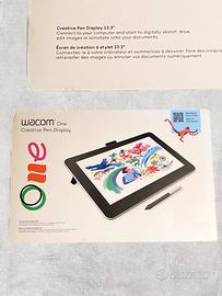 tavoletta grafica Wacom One Creative Pen Display (modello DTC133) 📌Caratteristiche principali: -Display 13,3" Full HD: Schermo opaco antiriflesso con sensazione naturale "penna su carta". -Penna Wacom One: Ergonomica, senza batteria (non si ricarica mai), con 4096 livelli di pressione e inclinazione 60°. -Compatibilità totale: Funziona con Windows, macOS, Android e Chromebook. -Design ergonomico: Piedini integrati pieghevoli per un'inclinazione di 19° durante l'uso.