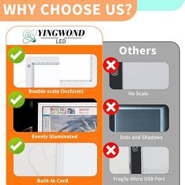 【Ampia Applicazione】Il light box da disegno YINGWOND è perfetto ideale per il tracciamento, la pittura con diamanti 5D, l'animazione 2D, la calligrafia, la goffratura, lo scrapbooking, il tracciamento dei tatuaggi.