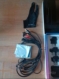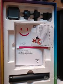 Contiene cavi di alimentazione, prese diverse (per le diverse nazioni), guanto, pezza per pulire lo schermo, tavoletta grafica, penna e mine di ricambio per la penna e istruzioni. Venduto nella custodia originale. Ha piccolo segno sullo schermo ma funziona perfettamente.
