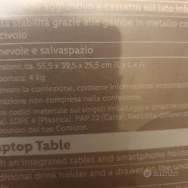 vendo a soli 5 euro il tavolino portatile nuovo/ sigillato porta pc o x altri.mille usi,ecc,ecc,Vendo causa inutilizzo,preferirei do precedenza a consegna a mano,vedere altri miei annunci/articoli a prezzi modici,possibile