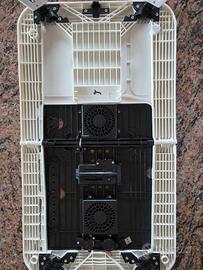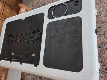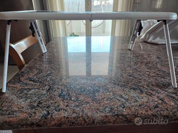 Tavolino richiudibile per computer di colore bianco e nero. Ottimo da utilizzare se si è sdraiati o seduti. Altezza circa 30 cm. Mai usato.