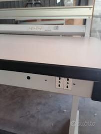 N.02 TAVOLI COME DA FOTO ,PER USO ATTIVITA' ELETTRONICA OPPURE DI LABORATORIO.DOTATO DI PRESE ELETTRICHE CON INTERRUTTORE GENERALE.Scatola di derivazione nel sottotavolo.Barra poggiapiedi.Piedini regolabili.Piano in melamina antiriflesso,verniciatura a polveri RAL 7035.Prezzo per singolo tavolo € 475,00