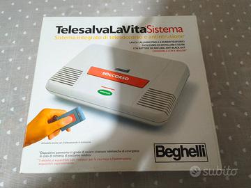 Tele salvavita beghelli, ideale per anziani o persone che vivono in casa da sole. Funziona collegandosi alla rete elettrica domestica e ad una linea telefonica fissa ma include una batteria ricaricabile che ne garantisce l'uso anche in caso di temporanea interruzione di corrente. Invia chiamate di emergenze a numeri telefonici preimpostati grazie al comodo telecomando dato in dotazione che può essere appeso al collo come collana, oppure grazie al pulsante rosso con scritto "soccorso" presente nell'apparecchio.