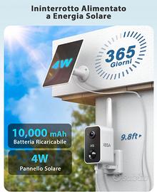 La batteria integrata da 10000 mAh, abbinata al pannello solare in dotazione, garantisce autonomia di lunga durata senza ricariche frequenti, perfetta anche dove non è presente corrente elettrica. Il supporto pieghevole permette un installazione flessibile su pareti, recinzioni o tettoie e la rotazione orizzontale fino a 180 gradi, regolabile da app, aiuta a coprire un ampio campo visivo riducendo i punti ciechi.