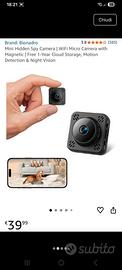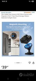 Telecamera wifi di dimensioni piccole e versatili. Acquisto errato su Amazon (visibile in foto il prezzo originale di 40€). Brand: Bionardo. Esiste una App dedicata e la possibilità di inserire una micro SD. Collegabile al wifi. Acquisto errato, vendo ancora con la pellicola
