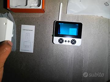 Vendo telecamera con monitor, campanello Videocitofono wireless, funziona senza fili e senza connessione , è ricaricabile tramite cavo tipo C (incluso). si può utilizzare in diversi modo o nella porta d'ingresso per visualizzare chi entra dotata di campanello..il monitor ha una antenna per posizionarlo dove si vuole, si può utilizzare anche come Baby monitor per visualizzare il neonato, è dotato di microfono e altoparlanti per sentire suoni sul monitor...si può inserire anche una memoria microSD per memorizzare i movimenti..