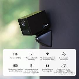 【Durata della batteria fino a 50 giorni (2000 mAh)】Dotata di una batteria ricaricabile da 2000 mAh, CB2 può durare fino a 50 giorni con una carica completa della batteria, garantendo prestazioni stabili tutto il giorno e la notte. Può anche essere collegata al pannello solare EZVIZ per essere alimentata direttamente.
