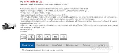 > Allarme: 2 ingressi, 1 uscita; audio: 1 ingresso, 1 uscita; supporta scheda Micro SD max. 512 G, doppio microfono e altoparlante integrati.