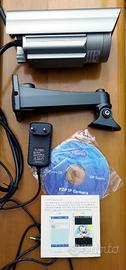 Telecamera IP P2P Waterproof (impermeabile) con connessione WIFI, visione notturna ad infrarossi, staffa di fissaggio a muro e tasselli.