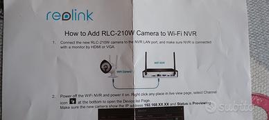 NVR VIDEOREGISTRATORE CON 4 TELECAMERE REOLINK WI-FI X ESTERNO POE IP VISIONE NOTTURNA MOD. RLC- 210W/ RLC- 420. NO SPEDIZIONI.