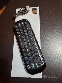 Telecomando universale con tastiera integrata, ideale per controllare diversi dispositivi.