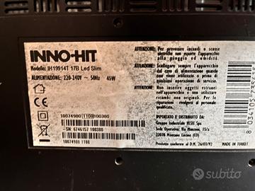 Vendo TV Inno-Hit da 17” in perfette condizioni, usata pochissimo. Modello IH 19914T 17B LED Slim, alimentazione 220-240V ~ 50Hz, 45W. Immagine nitida e colori brillanti, ottima come seconda TV per cucina, camera o casa vacanze. ✅ Caratteristiche principali: •Schermo LED da 17” (slim design) •Qualità d’immagine brillante •Ingressi HDMI e USB (se presenti nel modello) •Piedistallo originale incluso •Telecomando originale perfettamente funzionante ⚙️ Condizioni: pari al nuovo, testata e pronta all’uso. 💰 Prezzo: 40 € trattabil