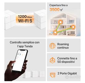 Tenda Nova MW6 WiFi Mesh, Dual Band AC1200, 2 Porte Ethernet Gigabit, Modalità Router e Access Point, Parental Control, 6 Pezzi Perfettamente funzionante, firmware aggiornato. Scatole imballo non presenti Prezzo non trattabile. Preferita consegna a mano con verifica funzionamento.