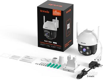 Tenda Telecamera Wi-Fi Esterno 2K+, Rilevamento di Veicoli/Persone/Movimenti NUOVA - SCATOLO SIGILLATO F1.6 Grande Apertura & 4MP Telecamera WiFi Esterno - Dotata di un potente sensore di immagine CMOS e di un obiettivo con apertura F1,6, la fotocamera raggiunge una risoluzione di 4 megapixel e offre immagini chiare e ricche di dettagli 360° PTZ Videocamera Sorveglianza - La possibilità di eseguire una panoramica e un'inclinazione (orizzontale: 355°, verticale: 90°) per ottenere un campo visivo di 360 gradi, senza lasciare zone morte di monitoraggio, consente di regolare l'angolazione tramite l'APP TDSEE per visualizzare in tempo reale Audio a 2 Vie & Audio Personalizzato - La funzione di comunicazione audio bidirezionale full-duplex in tempo reale consente di comunicare attraverso la telecamera. Inoltre, è possibile impostare messaggi audio personalizzati 35m Visione Notturna a Colori - Dotato di due faretti ad alta potenza e due luci IR con sensori di immagine ad alta sensibilità, Tenda CH7 permette una visione notturna nitida ed a colori. Sono disponibili tre modalità di visione notturna: modalità Smart, modalità a colori/Full-Color e modalità bianco e nero Rilevamento Auto/Umano/Movimento - Grazie agli algoritmi di intelligenza artificiale, le persone e i veicoli possono essere identificati con precisione, mentre le informazioni irrilevanti vengono filtrate efficacemente per aumentare l'accuratezza degli avvisi Allarme Sonoro e Luminoso - Se viene rilevata un'intrusione durante il periodo di allarme, viene attivato un allarme sonoro con una luce bianca lampeggiante per avvertire gli intrusi. 2.4GHz Wi-Fi o LAN Connessioni Le doppie antenne incluse migliorano i segnali Wi-Fi per una migliore penetrazione nelle pareti e una maggiore portata di trasmissione. Porta RJ45 per la connettività cablata per una connettività veloce anche in ambienti di rete affollati Vendita privata, dettagli dichiarati dal produttore Tenda.