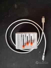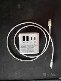 L'adattatore è perfettamente funzionante ed è dotato di 2 porte USB-A e 3 porte USB-C di cui una a ricarica rapida. Nella vendita è compreso anche un cavo USB-C.