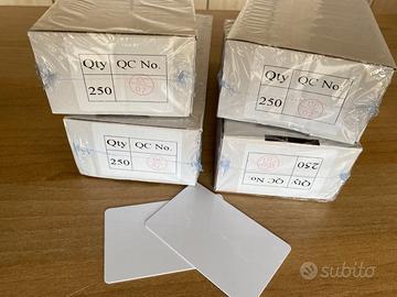 Vendo 1.000 tessere bianche neutre in confezioni da 250 pezzi con spessore 0,76 mm in PVC, formato ISO Standard CR80 54 mm x 85,6 mm. Compatibili con tutte le marche e modelli di stampanti per card in commercio (Evolis, Zebra, Fargo, Magicard, IDP, Datacard, Cim, ecc…). Gestisco la spedizione / vendita con " Tutto Subito"