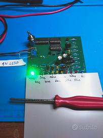 Si inserisce il diodo in esame nel connettore Phoenix e si legge la velocità di commutazione da interdizione a conduzione tramite scala graduata a led riportante anche la velocità corrispondente espressa in nano secondi serigrafata.