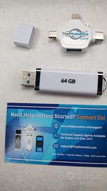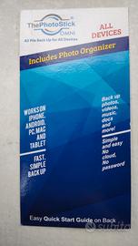 Vendo dispositivo ThePhotoStick Omnia 128 GB per backup e trasferimento sicuro di foto e video. Organizzatore file digitali, connessione USB e multiporta per telefoni tablet e computer. Memoria portatile.