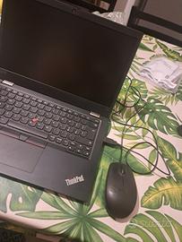 Computer ThinkPad L13 Lenovo con mouse e adattatore. Presente anche docking station.