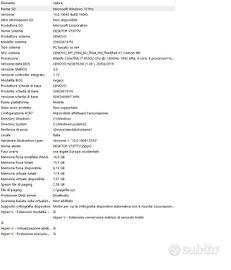 Intel(R) Core(TM) i7-8550U CPU @ 1.80GHz, 1992 Mhz, 4 core, 8 processori lo... LENOVO N23ET63W (1.38), 20/04/2019