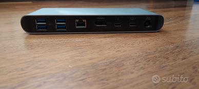 - PRESENTA 5 PORTE USB, 1 LAN, 1 DISPAYPORT, 3 USB-C, 1 PER ALIMENTATORE, 1 PER SD E UN JACK DA 3.5 MM