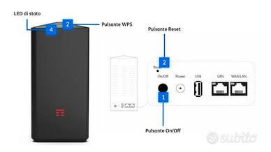 Pulsante WPS: Per l'accoppiamento rapido e sicuro con il modem.