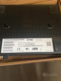 Modem TIM Hub in perfette condizioni, pronto per l'uso. - Router Fibra TIM. - Colore nero e grigio. - Include cavo di alimentazione e cavo ethernet.