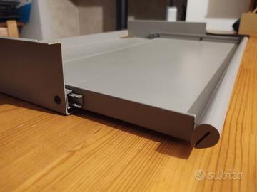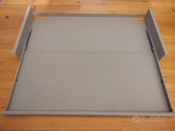 Vendo tiretto, da posizionare sotto il piano della scrivania, per alloggiare la tastiera del pc o laptop o ipad. Molto robusto, realizzato il acciaio verniciato grigio, funzionante su guide metalliche.