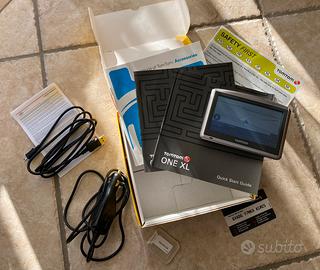 Navigatore GPS TomTom ONE XL completo di accessori. - Navigatore TomTom ONE XL, Manuali, scheda, cavo ricarica, cavo alimentazione in auto.