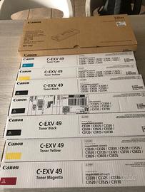 Buongiorno, si vendono toner canon c-exv 49 nuovi per cambio modello stampante. N.1 cyan - N.2 Yellow- N.1 Magenta- N.3 Black Prezzo euro 80 caduno