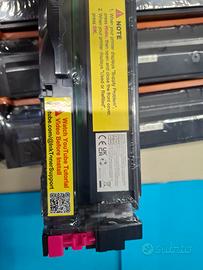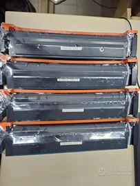 Set di 4 toner cartridge per stampante da ufficio, nelle colorazioni Magenta, Yellow, Black e Cyan. Ha un'alta capacità e stampa 3200 pagine ciascun toner.