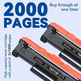 Vendo set di 2 toner compatibili Brother TN1150. Compatibili con stampanti Brother (HL e DCP), con chip quindi subito riconosciuti senza problemi. Ottimi per uso quotidiano, sia casa che ufficio. Buona qualità di stampa e resa affidabile. Ritiro a mano Roma Pantano Metro C, oppure consegna tramite piattaforma.