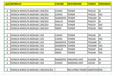 Vendo bundle completo di toner e imaging unit per stampanti Konica Minolta Bizhub C203, C253 e C353