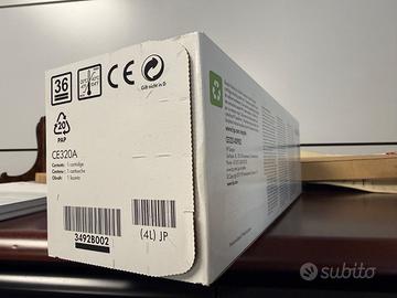Toner per stampante laser HP Nero / Black CE320A 128A NUOVO MAI APERTO. (Nella foto si vede il sigillo e la scatola ancora intatta) TENUTO DI SCORTA IN UFFICIO, MA POI LA STAMPANTE MI HA ABBANDONATO.