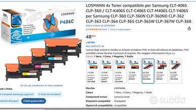 Vendo tre toner nuovi (nero, blu e giallo) causa rottura stampante, acquistati da Amazon in kit a 49, 00Euro, compatibili con diverse stampanti vedi foto. Regalo 7 toner, stesse caratteristiche, utilizzati parzialmente ( 3 magenta, 2 blu, 1 giallo ed 1 nero.