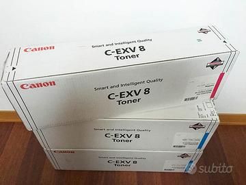 Toner C-EXV 8 MAGENTA Toner originale Canon per stampanti laser colore / multifunzione iR C3200 - C220N - CLC 3200 - CLC 3220 - CLC 2620. Confezione nuova sigillata - codice prod. 7627A002 - 1 PEZZO DISPONIBILE Toner C-EXV 8 CYAN Toner originale Canon per stampanti laser colore / multifunzione iR C3200 - C220N - CLC 3200 - CLC 3220 - CLC 2620. Confezione nuova sigillata - codice prod. 7628A002 - 2 PEZZI DISPONIBILI Vendo in blocco a 50 euro. - RIBASSATO!