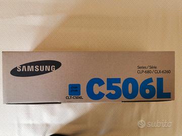 Vendo cartuccia toner originale hp-Samsung CLT-C506L colore ciano per stampanti laser Samsung. La confezione è nuova e sigillata, garantendo qualità e prestazioni ottimali.