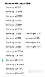 Vendo N° 3 toner nuovi per stampante laser Samsung ( Vedere ultima foto con le sigle a cui si adattano).
