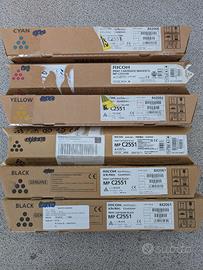 Toner Ricoh Originali nuovi ancora sigillati, di cui : n.3 Toner Nero + 1 Toner Ciano + 1 Toner Magenta + 1 Toner Giallo. Compatibili con stampanti Ricoh Aficio MP C2030, MP C2050, MP C2051, MP C2530, MP C2550, MP C2551.