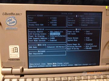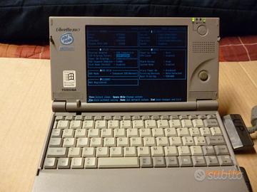 Eccellenti condizioni, stato originale con aggiornamento da Win95 a Win98Se e floppy di ripristino, disco rigido HD 20Gb + HD 810Mb (fornito con originale con WinDos3.3) processore Intel Pentium 75 MHz, 32 MB RAM (predisposto per espansione) schermo TFT da 6.1. Batteria originale rigenerata e perfettamente mantenuta, carica batteria originali in ottimo stato, valigetta rigida, lettore floppy PMCIA originale, adattatore e replicatore di porte PA2718U originale con porta stampante, RS232 per mouse, Infrarosso ed audio out, dimensioni 210 x 115 x 34 cm peso 900gr circa. Funziona perfettamente nessun problema. Articolo tra il 1996/1999 e raro per collezionisti ed appassionati.Spedizione a carico dell'acquirente