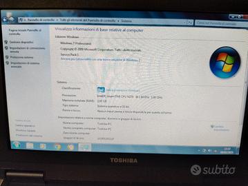processore Intel atom, CPU n. 270 1,6 GHz, hard disk 148 GB , RAM DDR 2 GB, connettore ethernet, 3 porte USB, Memory card st-mmc, uscita VGA, wifi e bluetooth, webcam 1,3 MP, Windows professional