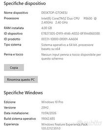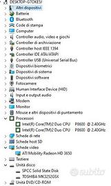 Laptop TOSHIBA Satellite Pro P300 con display da 17” con risoluzione 1440x900! Processore Intel P8600 Dual Core 2.4GHz, RAM 4GB DDR2, 2 dischi interni: un SSD Silicon Power da 512GB + un HDD da 320GB. Scheda video ATI mobility Radeon HD3650; presente lettore/masterizzatore DVD, 3 porte USB, porta VGA, porta SATA, porta LAN. Dotato del suo alimentatore originale, la batteria ancora funzionante ha circa 1/2 ora di autonomia. Ottimo per essere usato come “muletto” o per acquisire i primi rudimenti di informatica. S.O. WIN 10 PRO. Non sono previsti sconti poiché solo il disco SSD costa € 85! Il PC si avvia incredibilmente in meno di 30 secondi (video prova). Le foto e le caratteristiche riportate nell’annuncio sono quelle reali dell’oggetto in vendita. Sono un privato pertanto non rilascio ricevuta, non accetto nessun tipo di reso/rimborso, non posso rilasciare garanzia. Vige la regola VISTO E PIACIUTO. Dichiaro terminate le mie responsabilità dal momento in cui procedo alla spedizione dell’oggetto. Acquistando accetti le mie condizioni di vendita a prezzi bassissimi.