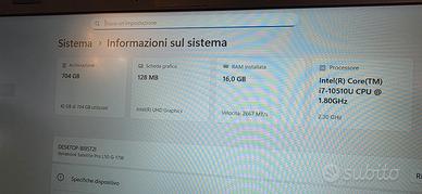 Computer portatile Toshiba Dynabook,in ottime condizioni generale.Funziona benissimo per le applicazioni multi-media oppure dei applicazioni ufficio. ✅️Pulito da polvere. ✅️Pasta termica cambiata con Artic Silver M6 ✅️SSD SATA M2 sostituito con un SSD NVMe PCIe. ✅️Nuova installazione Windows 11. Marca : Toshiba Modello : Satellite Pro Dynabook L50-G-17W Specificazioni : Sistema operativa : Windows 11 Processore : i7 10510u 1.8-4.9Ghz 4C/8C 3-3.9Ghz 4C/8T Memoria RAM : 16Gb DDR4 Archiviazione : 256 Gb NVME SSD Scheda Grafica : Intel UHD Graphics Schermo : 15.6 pollici Tastiera QWERTY Italiana Uscita Video HDMI Uscita audio jack Web Cam USB 3.0 USB C Bluetooth integrato SD Slot Batteria : originale a sostituire +/- 25 € su aliexpress Caricabatterie incluso.