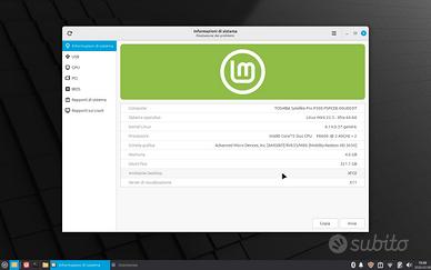 Laptop TOSHIBA Satellite Pro P300 con display da 17” processore Intel P8600 Dual Core 2.4GHz, RAM 4GB DDR2, HDD da 320GB (possibilità di montare altro hard disk nella bay disponibile). Scheda video ATI mobility Radeon HD3650; presente lettore/masterizzatore DVD, 3 porte USB, porta VGA, porta SATA, porta LAN. Dotato del suo alimentatore originale, la batteria ancora funzionante ha oltre 1 ora di autonomia. Ottimo per essere usato come “muletto” o per acquisire i primi rudimenti di informatica. S.O. Linux Mint XCFE 22.3.= Le foto e le caratteristiche riportate nell’annuncio sono quelle reali dell’oggetto in vendita. Sono un privato pertanto non rilascio ricevuta, non accetto nessun tipo di reso/rimborso, non posso rilasciare garanzia. Vige la regola VISTO E PIACIUTO. Dichiaro terminate le mie responsabilità dal momento in cui procedo alla spedizione dell’oggetto. Acquistando accetti le mie condizioni di vendita a prezzi bassissimi.