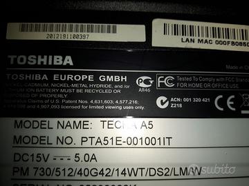 vendo toshiba tecra A5 ottime condizioni come si può vedere dalle foto. Il computer è perfettamente funzionante ed è stato formattato completamente per essere venduto a causa del non utilizzo. E' stato installato il sistema operativo lubuntu. Non ha caricabatterie.