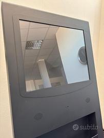 Totem multimediale da interno dal design moderno, ideale per negozi, showroom, reception, fiere, eventi o spazi espositivi. Il totem è di colore nero, con struttura autoportante, schermo integrato nella parte superiore, vani/mensole frontali utili per materiale informativo o piccoli oggetti, telecomando incluso e cavo di alimentazione.