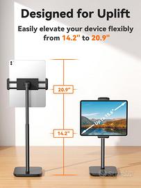 tounee Supporto per tablet regolabile da 11,6 a 19,2 pollici per iPad Pro 9.7, 10.5, 12.9, Air Mini 2 3 4, iPhone e tablet da 4.7"-15.8", nero